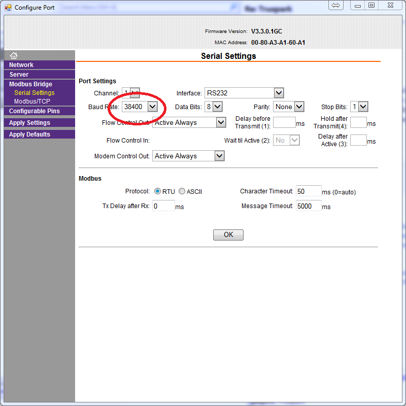 changed the Baud Rate to 38400