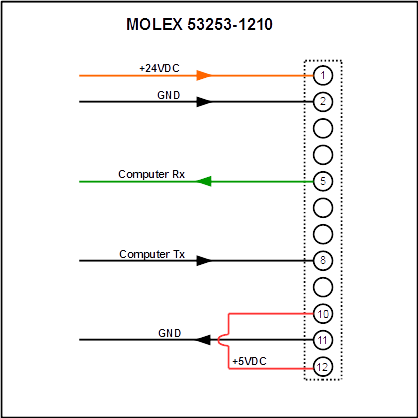 See the diagram below for how to connect the CM1 motor for standard TTL serial communications. The Rx and Tx in the diagram refer to the receive and transmit on the user device.