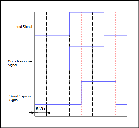 If the Input is deactivated before the slow signal response time is reached, only the quick response function is triggered and the slow response is not recognized.