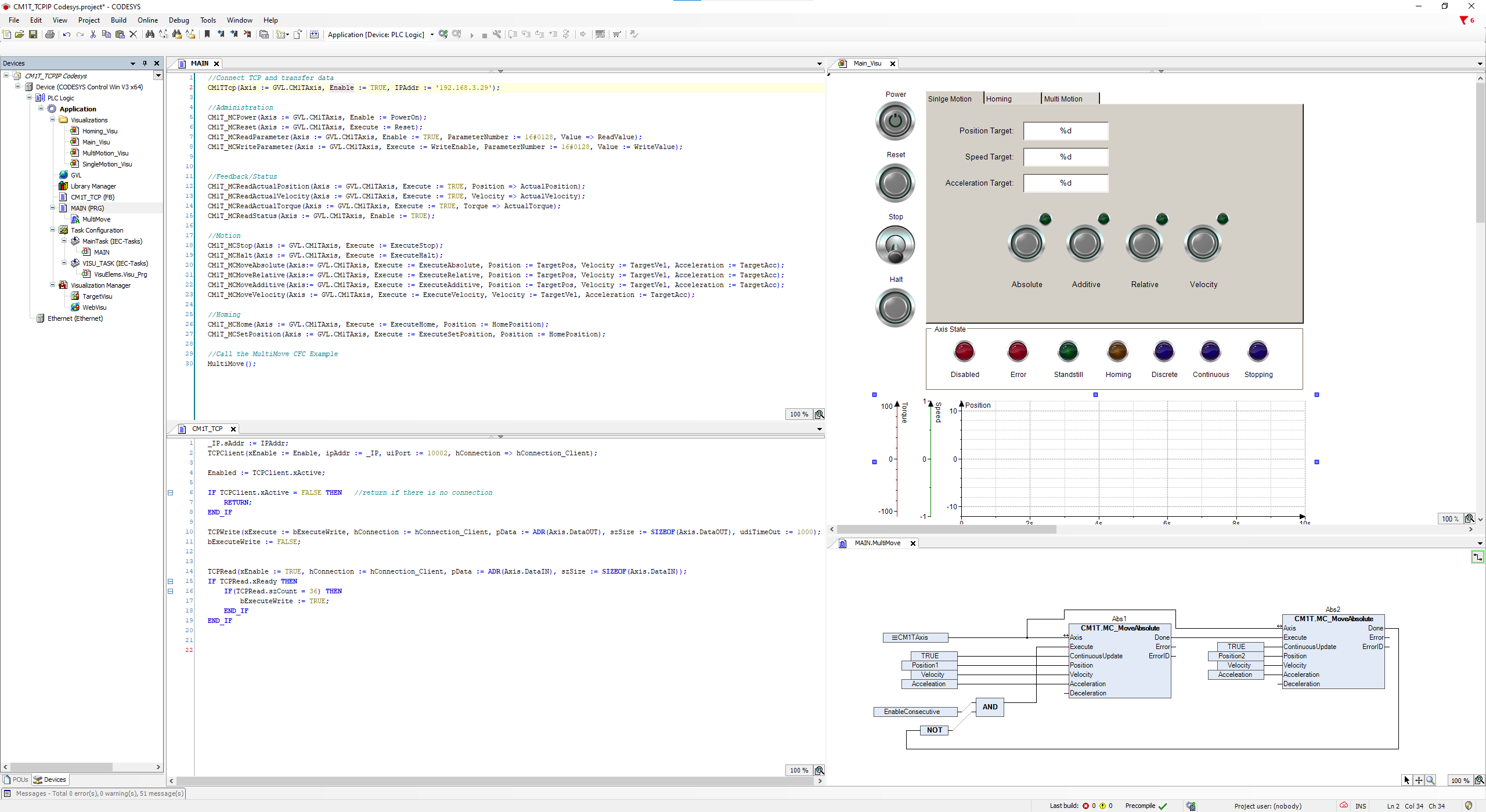 Codesys Control Win PLC controlling a CM1-T integrated servo motor using TCP/IP and the CM1T library