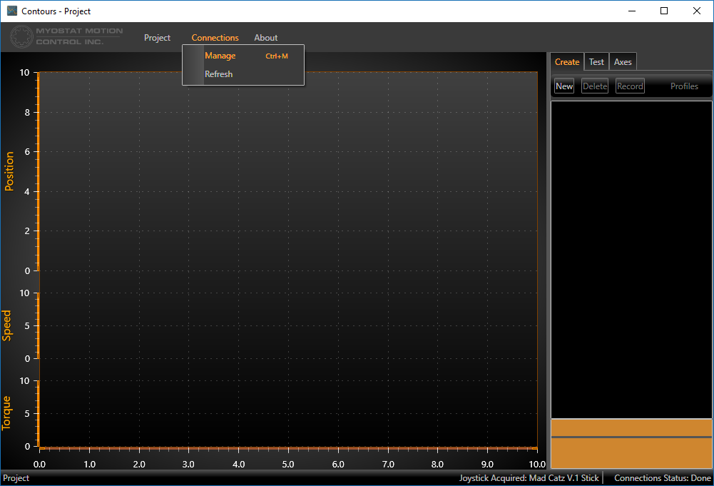Once you have linked a motor to the axis, you can click on the check-box in the 'connected' column to open communications to that motor. You must be connected in order to record any data for the axis.