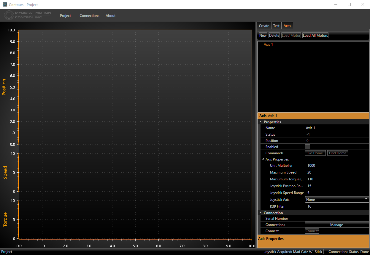 From the Axes tab, select new. This will create a new axis for your project. Below, in the properties window, you can name the axis. Once you have created an axis, you can associate that to a motor.